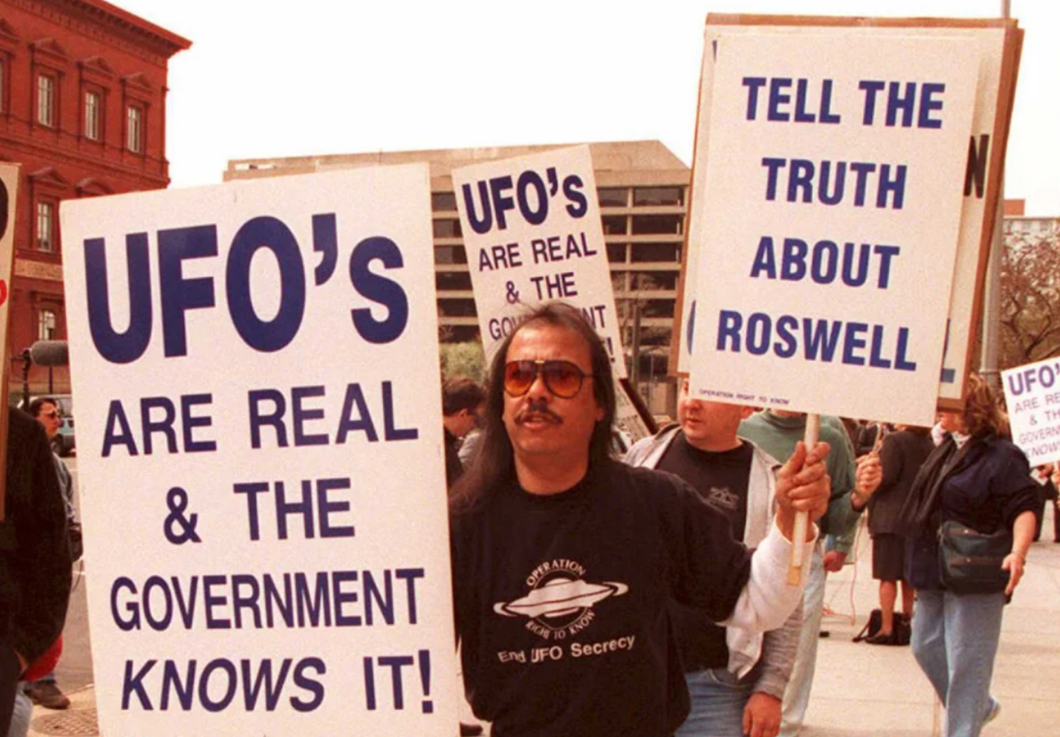 სოციუმის ნაწილს სჯერა, რომ დედამიწაზე მიმდინარე გარკვეული მოვლენები უცხოპლანეტელებს უკავშირდება. მათ შორისაა ისეთი საიდუმლოებები, როგორებიც არის სავარაუდო მფრინავი თეფშის ჩამოვარდნა როსველში 1947 წელს. ამ ინციდენტის „დაფარვას“ კი Area 51-ს უკავშირებენ — მეტისმეტად გასაიდუმლოებულ სამხედრო ბაზას, სადაც ექსპერიმენტული კვლევები ტარდება. ეს კი მეტად აძლიერებს ჭორებს, რომ იქ უცხოპლანეტელებსა და მათ ტექნოლოგიებზე ტარდება კვლევები.