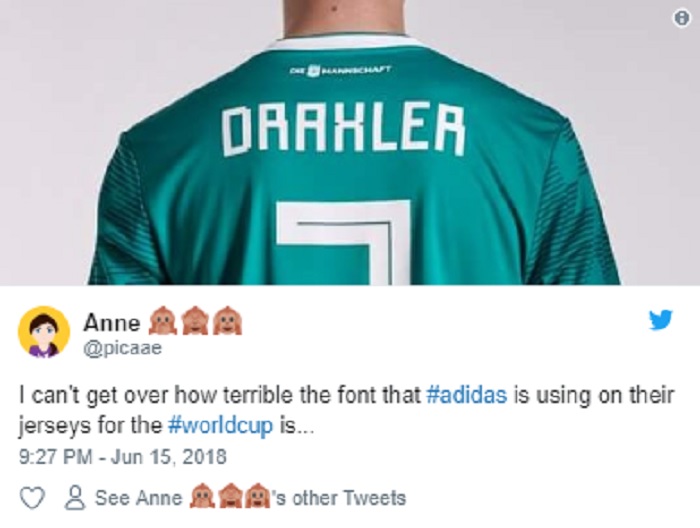 სხვადასხვა ქვეყნის ფეხბურთელების უცნაური გვარების წაკითხვა, გამოთქმა ისედაც რთულია ხოლმე, მაისურებზე დატანილი გაურკვეველი ფონტები კი სიტუაციას კიდევ უფრო ართულებს. მსოფლიო ჩემპიონატის მიმდინარე მატჩებზე საზოგადოებამ არაერთი გაურკვეველი გვარი დააფიქსირა, ერთ-ერთი განსაკუთრებული შემთხვევა Adidas-ის მიერ მომზადებული მაისურები, უფრო კონკრეტულად კი ფეხბურთელ ჯულიან დრაქსლერის ფორმა და გვარი აღმოჩნდა, რომელსაც გულშემატკივარმა არაერთი სახალისო ინტერპრეტაცია მოუძებნა.