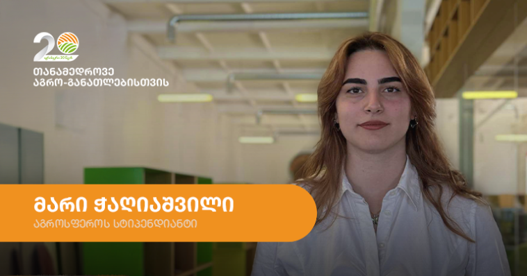 „აგროსფერომ“ წელს სტიპენდია აგრარული უნივერსიტეტის მაღალი მოსწრების 6 სტუდენტს დაუნიშნა. შერჩეულ სტუდენტთა შორის მოხვდა აგრონომიის პროგრამის მე-4 კურსის სტუდენტი მარი ჭაღიაშვილი.
