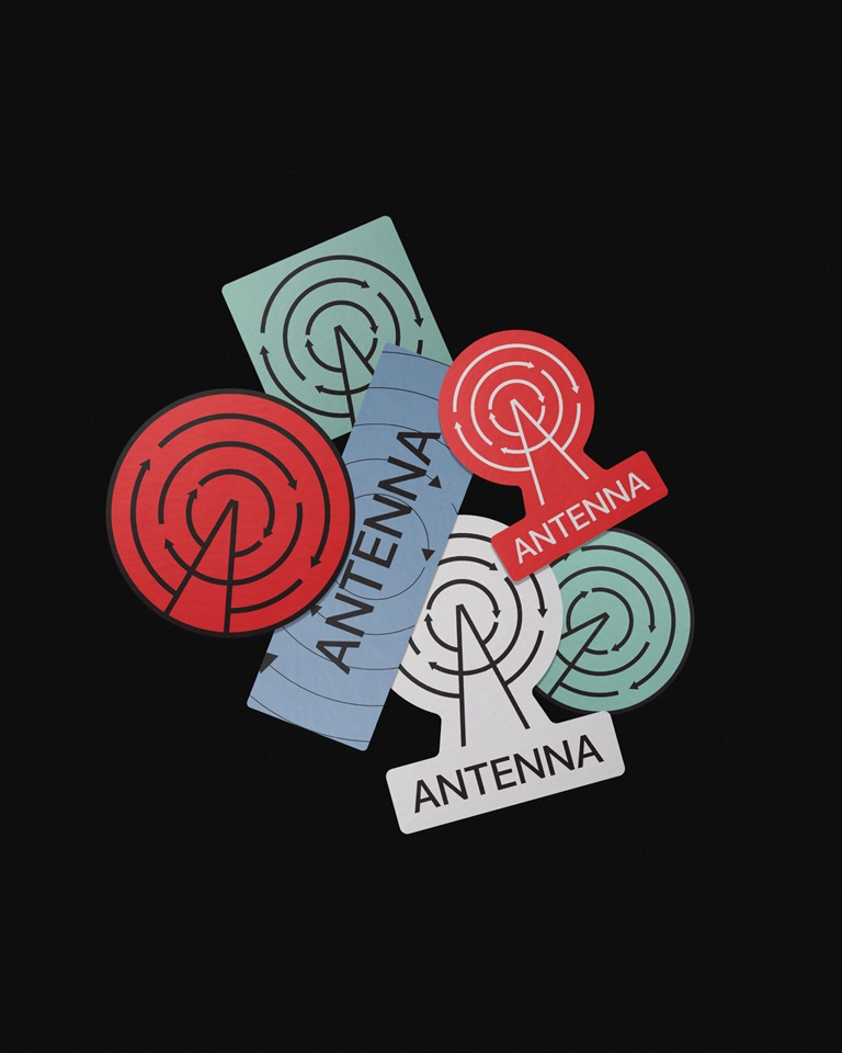 რადიოტალღებიდან გამომავალი ხაზები და ისრები, რომლებიც მუსიკის, იდეებისა და ენერგიის გავრცელებას გამოხატავს. ეს „ანტენას“ ვიზუალური იდენტობაა, რომელზეც Holy Motors-ის შემოქმედებითმა გუნდმა იმუშავა. კონცეფცია სახელისა და მისი დანიშნულების იდეას ეხმიანება. ფერთა სქემა შედგება თეთრი, წითელი, მწვანე და შავი ფონებისგან, რომლებიც განასხვავებს სხვადასხვა ტიპის ღონისძიებებს და ქმნის ადვილად ამოსაცნობ ვიზუალურ ენას სოციალურ მედიაში. შრიფტი თანამედროვე და მინიმალისტურია, რაც ანონსის მკაფიოდ გადმოცემის საშუალებას იძლევა. ვიზუალური იდენტობა ზუსტად გადმოსცემს ბარის კონცეფციას, რადგან „ანტენა“ არის ადგილი, სადაც ადამიანებს მუსიკალური კულტურა და ურთიერთობები აერთიანებთ.