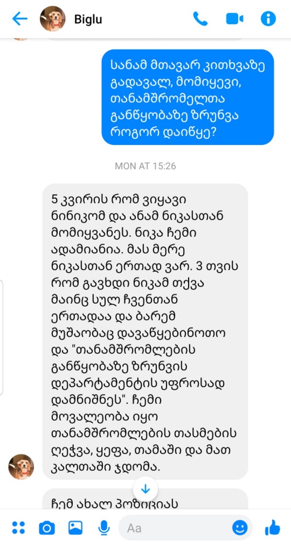 M: ბიგლუ, სანამ მთავარ კითხვაზე გადავალთ, მოგვიყევი, თანამშრომელთა განწყობაზე ზრუნვა როგორ დაიწყე?