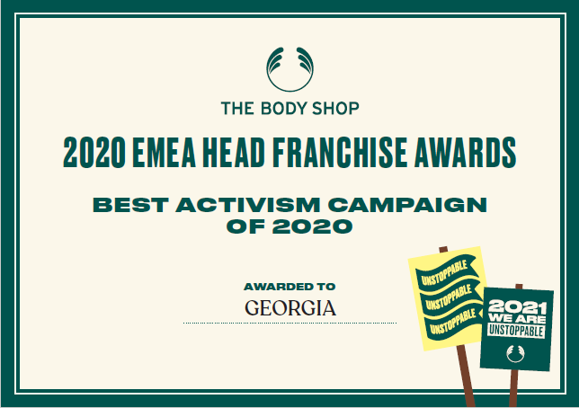 გამონაკლისი არც საქართველო ყოფილა. ამიტომ, „ბოდიშოპ საქართველომ“, მთელი წლის მანძილზე, სხვადასხვა სახის აქტივობა განახორციელა, რომ ამ პრობლემის მიმართ, ცნობიერება გაეზარდა. სწორედ ამ კამპანიებისა და აქტივიზმისთვის გადაეცა ბრენდს ჯილდო.