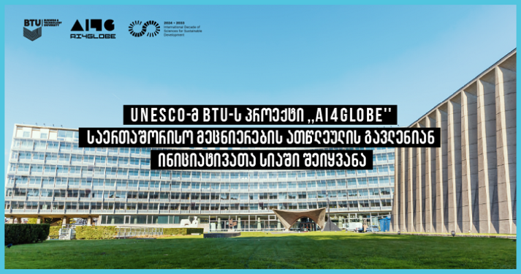 ბიზნესისა და ტექნოლოგიების უნივერსიტეტის მნიშვნელოვანი საერთაშორისო აღიარება – UNESCO-მ ხელოვნური ინტელექტის წიგნიერების ფართომასშტაბიანი, საერთაშორისო ინიციატივა AI4Globe აღიარა და შეიყვანა საერთაშორისო მეცნიერების ათწლეულის (International Decade of Sciences for Sustainable Development – IDSSD, 2024–2033) გავლენიანი პროექტებისა და ინიციატივების სიაში.