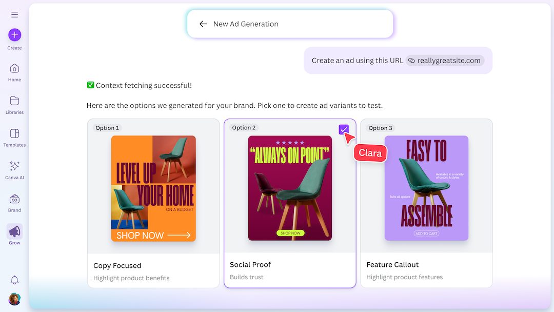 გარდა დიზაინისა, კანვა ყოვლისმომცველ მარკეტინგულ პლატფორმად პოზიციონირდება. ახალი Canva Grow ინსტრუმენტი აერთიანებს იდეების გენერირებას, შექმნას, გამოქვეყნებას და ანალიტიკას ერთ უწყვეტ პროცესში. მომხმარებლებს შეუძლიათ, შექმნან კამპანია, გამოაქვეყნონ ის პირდაპირ Meta-ზე ან სხვა ქსელებში, შემდეგ კი გაზომონ ჩართულობა პლატფორმის დატოვების გარეშე.