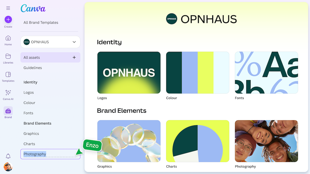 აქ ლოგოები, ფონტები თუ ფერთა პალიტრა ავტომატურად ემატება ნებისმიერ აქტივს. ეს ხელსაწყოები Canva Business-ის ქვეშ გვხვდება, რომელიც, თავის მხრივ, იმისთვისაა შექმნილი, რომ პატარა გუნდებს უკეთეს ანალიტიკაში დაეხმაროს და წვდომაც მისცეს იმგვარ AI ასისტენტზე, რომელიც მეწარმის დონის არ გახლავთ.