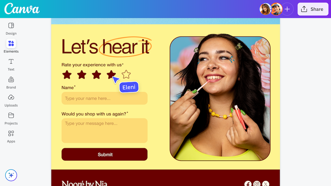 ეს კი უკვე ინტერაქტიული ელემენტების ჩართვას გვთავაზობს პირდაპირ ჩვენს დიზაინში, იქნება ეს RSVP თუ საკონტაქტო ფორმები. წარდგენილი დოკუმენტაცია კი ავტომატურად განთავსდება Canva Sheets-ში, რითაც მონაცემებსა და დიზაინს ერთ სამუშაო სივრცეში მოაქცევს.