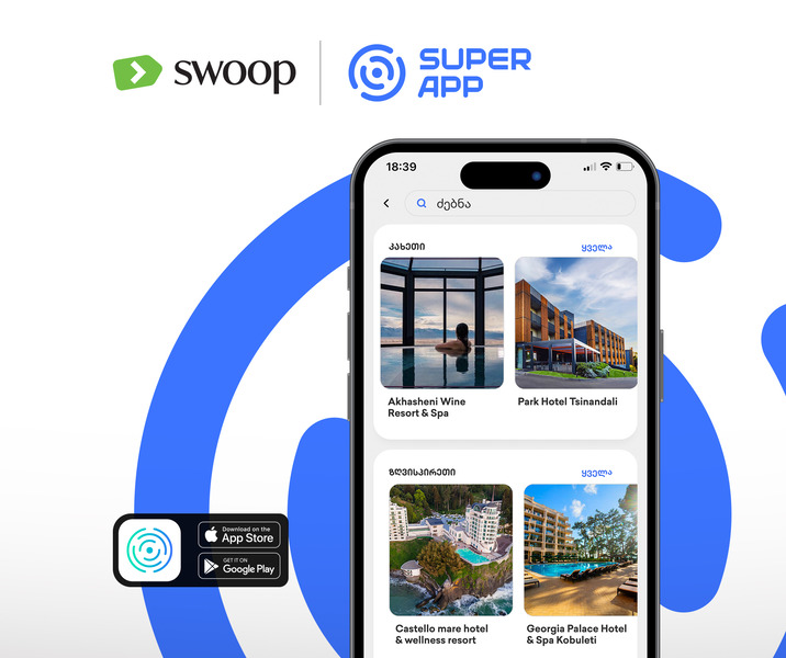 Swoop-ისა და Check-in Travel-ის თანამშრომლობის ფარგლებში, მომხმარებელს მრავალი სასიამოვნო სიურპრიზი ელოდებათ, რაც ჩარტერულ რეისებსა და სხვა საინტერესო შეთავაზებებს გულისხმობს. მომხმარებლებს შეთავაზების შეძენა შეეძლებთად როგორც საიტის Swoop.ge-ს, ასევე აპლიკაციის Super app-ის მეშვებობით.