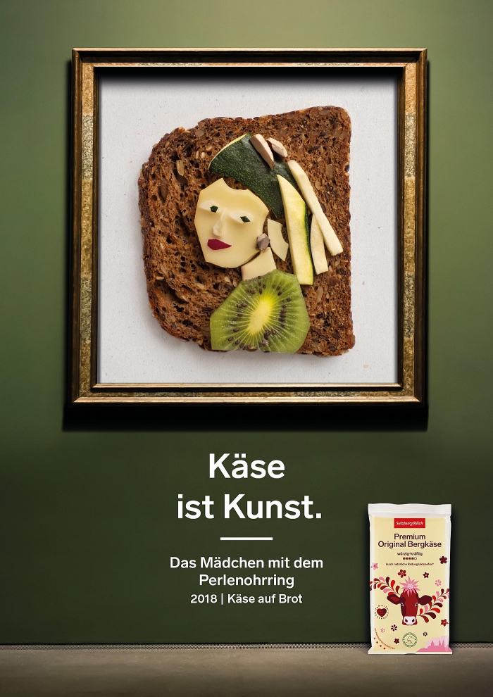 ავსტრიულმა სააგენტომ რძის პროდუქტების მწარმოებლის SalzburgMilch ყველისგან ცნობილი ფერწერული შედევრები შექმნა. ნამუშევრებს შორისაა: ედვარდ მუნკის “კივილი”, იან ვერმეერის “გოგონა მარგალიტის საყურით”, ბოტიჩელის “ვენერას დაბადება” და ვან გოგის “ავტოპორტრეტი მოკვეთილ ყურთან და ჩიბუხთან ერთად”. ყველისგან დამზადებულ შედევრებს ლუვრის მუზეუმში არ გამოფენენ, თუმცა, ყველის რეკლამისთვის ორიგინალური მიგნებაა.