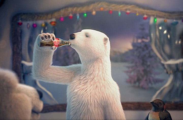 თეთრ დათვებს, რომლებიც “კოკა-კოლას” რეკლამებში ხშირად გვხვდებიან, ოცდახუთი წელი შეუსრულდათ. პირველი ვიდეორგოლი, პოლარული დათვების მონაწილეობით, 1993 წელს გამოჩნდა. რეკლამამ, სახელწოდებით “ჩრდილოეთის ნათება” პოპულარობა მალევე მოიპოვა, ისევე, როგორც თავად დათვებმა. “კოკა-კოლას” ეს პერსონაჟები კრეატიულმა სტრატეგორმა კენ სტიუარტმა გამოიგონა. შთაგონება კენმა თავისი ლაბრადორისგან მიიღო, რომელიც ყოველთვის პოლარულ დათვს აგონებდა. უკვე ოცდახუთი წელია, ეს დათვები “კოკა-კოლას” ბრენდის იდენტობის განუყოფელი ნაწილია. “ჩრდილოეთის ნათება” ანიმაციურმა სტუდიამ Rhythm & Hues და საკომუნიკაციო სააგენტომ CAA შექმნეს, ხოლო ახალ საახალწლო რეკლამაზე სააგენტომ David Sao Paulo იმუშავა.