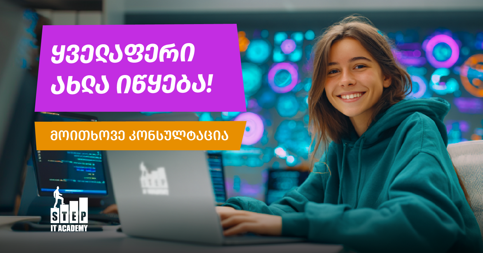- იცი, რომ გინდა რაღაც მეტი, მაგრამ ჯერ ზუსტად არ იცი რა? – უკვე ეს არის შენ მიერ გადადგმული დიდი ნაბიჯი – სურვილი, რომ არ გაჩერდე! პროფესიასთან დაკავშირებით, კი მოითხოვე კონსულტაცია და დაგეხმარებით იმისი გარკვევაში, თუ რომელი ტექნოლოგიური პროფესიაა შენთვის.
