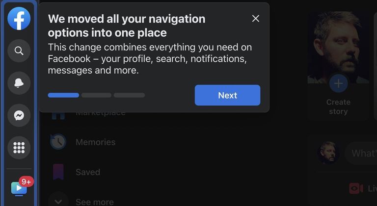 „ჩვენ გადავიტანეთ თქვენი ნავიგაციის ყველა ვარიანტი ერთ ადგილზე – ეს ცვლილება აერთიანებს ყველაფერს, რაც გჭირდებათ Facebook-ზე – თქვენს პროფილს, ძიებას, Messenger, შეტყობინებებს და ა. შ.“ – სწორედ ასეთი წარწერის ფანჯარა შეგატყობინებთ Facebook-ის დესკტოპის დიზაინის ცვლილებას.