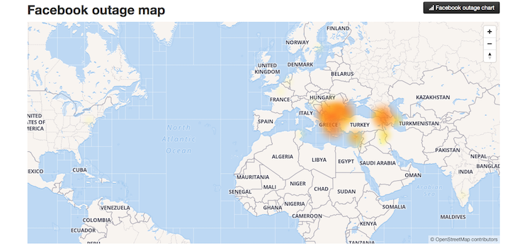მსოფლიოს უდიდესი სოციალური ქსელი Facebook რამდენიმე წუთის წინ ისევ გაითიშა. მასთან ერთად, მიუწვდომელია Facebook-ის სხვა პროდუქტებიც – Whatsapp და Instagram. დღევანდლამდე (2019 წლის 2 მაისი) facebook-ს ყველაზე მასშტაბური შეფერხება 2019 წლის 19 აპრილს დაფიქსირდა, როცა სოციალური ქსელი და მისი სხვა პროდუქტების სერვისები რამდენიმე საათის განმავლობაში იყო გათიშული. როგორც Downdetector-ზე ვკითხულობთ, შეფერხება ჩვენს რეგიონსა და სამხრეთ ევროპაზე ვრცელდება.
