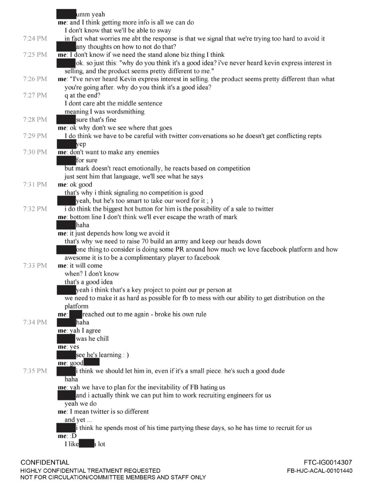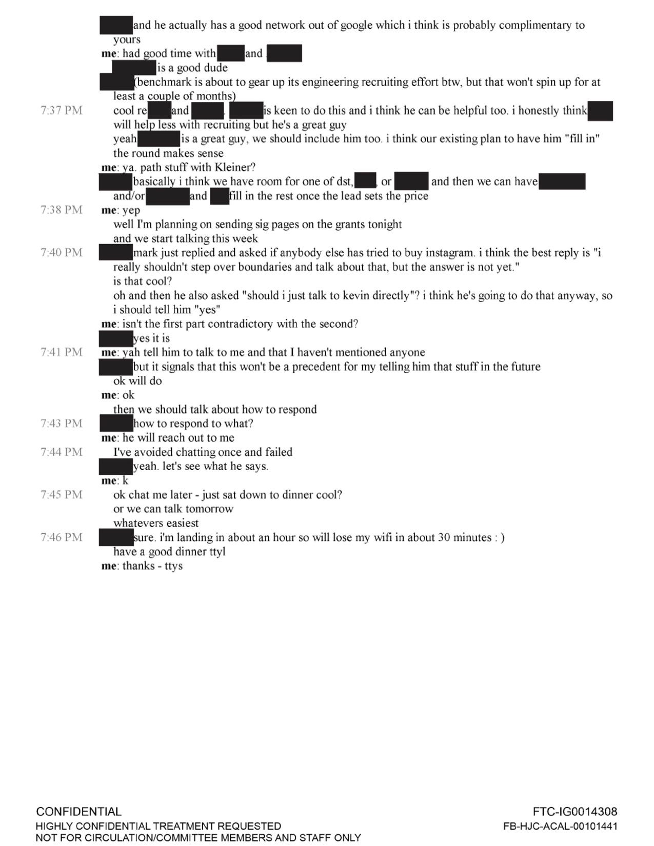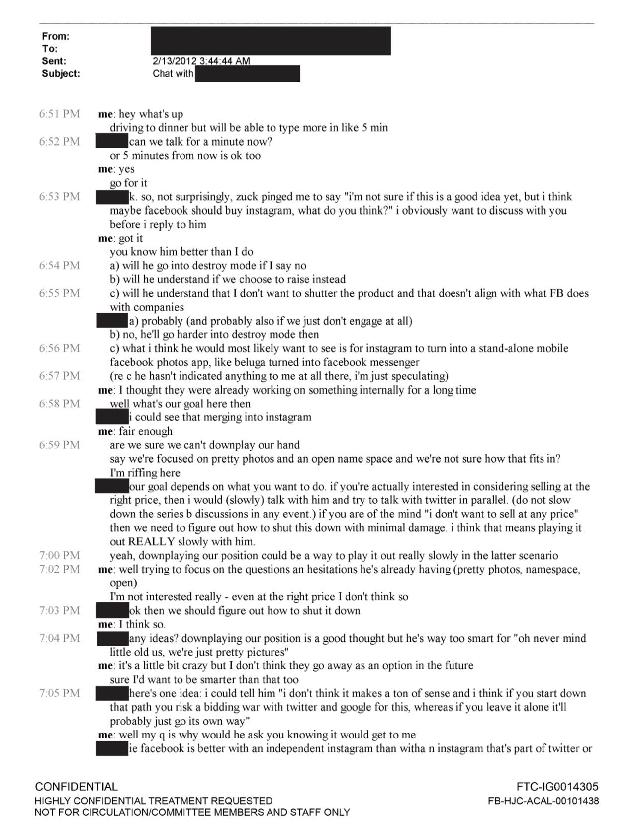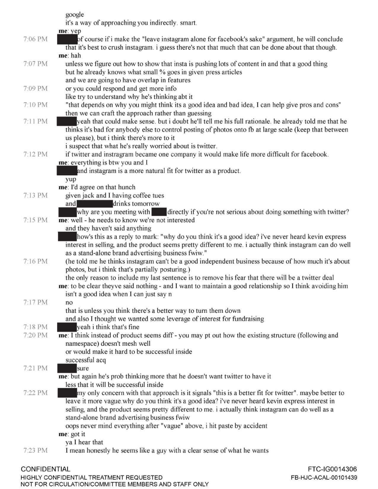 აღსანიშნავია, რომ მიმოწერაში ინსტაგრამის თანადამფუძნებელი გამოთქვამს ეჭვს, რომ ზაკერბერგი „დამანგრეველ რეჟიმზე“ გადავა, იმ შემთხვევაში, თუ Instagram დამოუკიდებლად დარჩენას გადაწყვეტს. ტექნოლოგიური მონოპოლიის წინააღმდეგ მიმართულ გამოძიებას აქამდე არაერთ ტექნოლოგიურ გიგანტთან დაკავშირებული ინფორმაცია გაუსაჯაროვებია, Instagram-ის თანადამფუძნებლის მიმოწერა კი ერთ-ერთი ასეთია.
