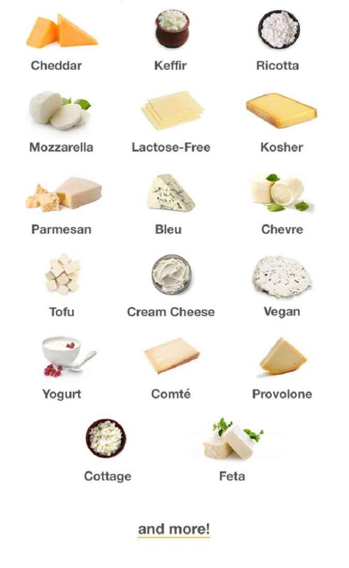 Fromaggio-ს მეშვეობით ყველის შემდეგი სახეობების მომზადება შეგიძლიათ:
