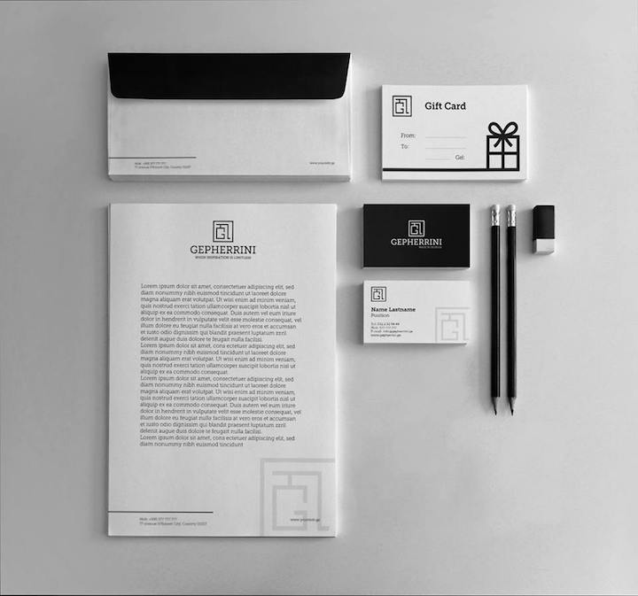გეფერინის ახალ კონცეფციაზე ლოგოს რამდენიმე ვარიანტს ვფიქრობდით. გვინდოდა, რომ ლოგოში ასახული ყოფილიყო ყველა ის უპირატესობა და განსხვავება, რითაც გეფერინი მართლაც გამორჩეულია: ეს არის ჩანთების ფორმები, ფერები, კლასიკა და თანამედროვეობა ერთად. სწორედ ამიტომ ძირითადად სამი განსხვავებული მიმართულებით ვამუშავებდით ბრენდის ლოგოსა და დიზაინს. საბოლოოდ გადაწყვეტილება შეჩერდა აღნიშნულ დიზაინზე, რომელშიც აქცენტი გადატანილია ასობგერა “გ”-ზე. Gepherrini -ს პირველი ასო G. ლოგოში გავაერთიანეთ ქართული “გ” ასო, ძველი ქართული “გ” და ლათინური G არის Georgia და Gepherrini, ასევე მისი ლათინური გამოსახულება ხაზს უსვამს, რომ ეს წარმოება მხოლოდ საქართველოსთვის არ არის და მსოფლიოს სხვადასხვა ქვეყანაში გადის. ლოგო არის მარტივი, გასაგები, კავშირი აქვს ბრენდთან, მის წარმოშობასთან და ასევე მსოფლიოსთან.