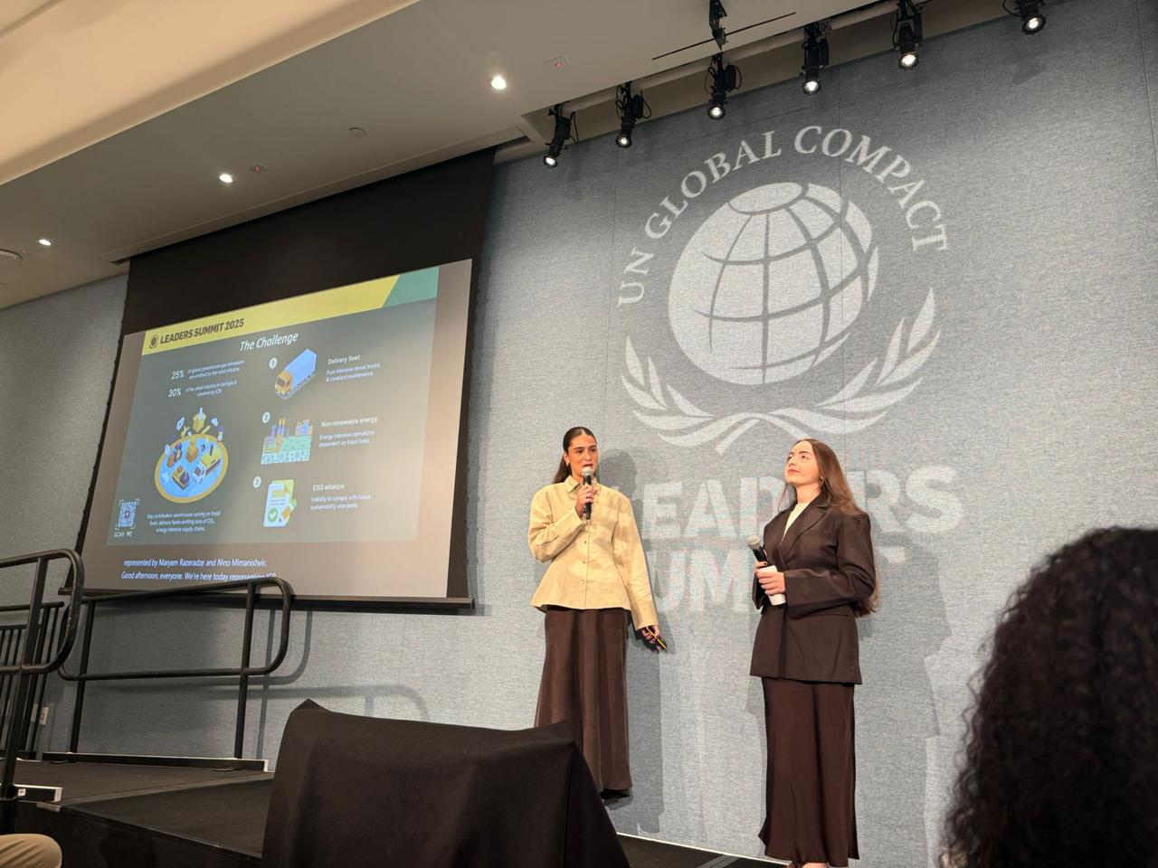 გაეროს გლობალური შეთანხმების 25 წლის იუბილეს აღსანიშნავად 23 სექტემბერს ნიუ-იორკში, გაეროს გენერალური ასამბლეის ფარგლებში გამართულ ლიდერთა სამიტზე აი სი არ ჯგუფის ორმა წარმომადგენელმა, როგორც გამარჯვებული პროექტის ავტორებმა – მარიამ ხაზარაძემ და ნინო მემანიშვილმა, წარადგინეს აი სი არ ჯგუფის პროექტი.
