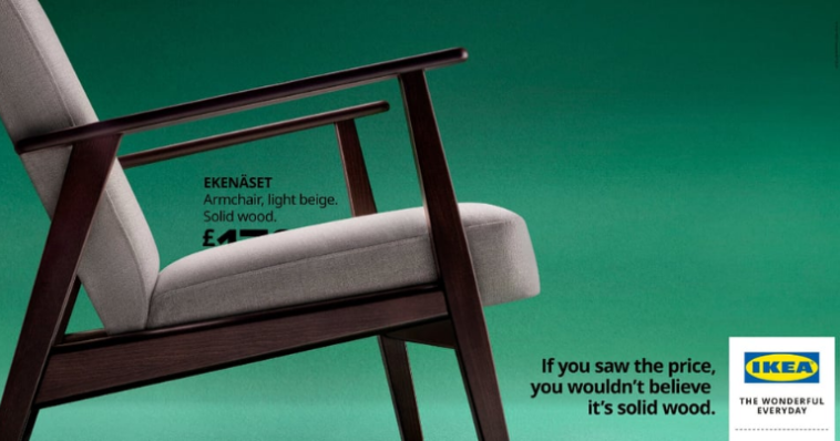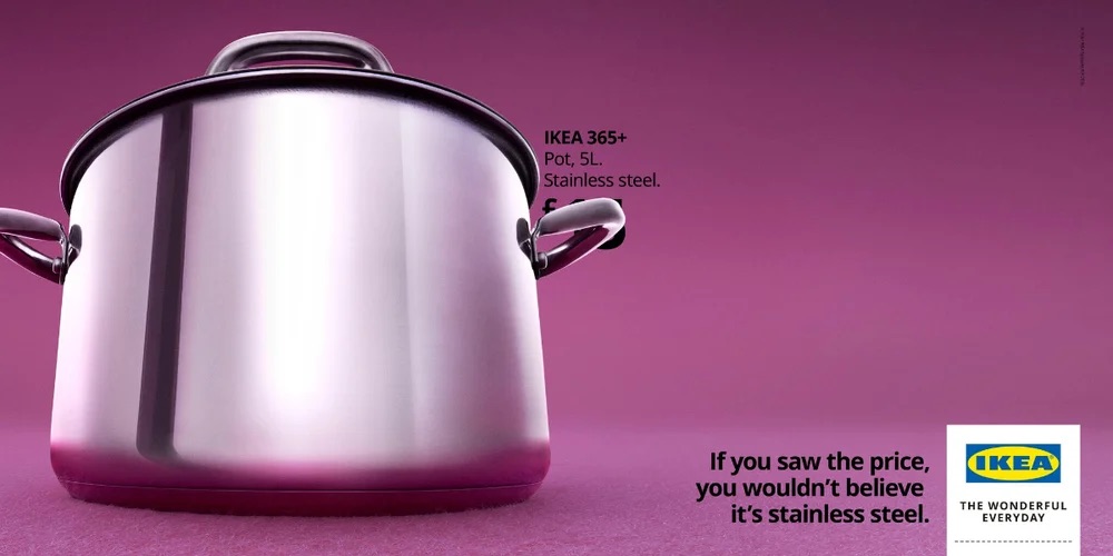 ყველაზე მარტივი გზა მომხმარებელთა მოსაზიდად ფასდაკლებებია, თუმცა იკეამ სულ სხვა მიდგომა არჩია — ადამიანებს სთხოვა, მასალებზე ეფიქრათ და არა, ციფრებზე. ახალ სარეკლამო კამპანიაში ფასები შეგნებულად დამალა მომხმარებელთა თვალსაწიერიდან. დაბალ ფასზე აქცენტირებას ხარისხის წინ წამოწევა არჩია და მომხმარებლებს მოუწოდა, ფოკუსირებულიყვნენ იმაზე, რითაც იკეას ავეჯი მზადდებოდა და არა, იმ დაბალ ფასზე, რომელსაც იკეა სთავაზობდა მათ.
