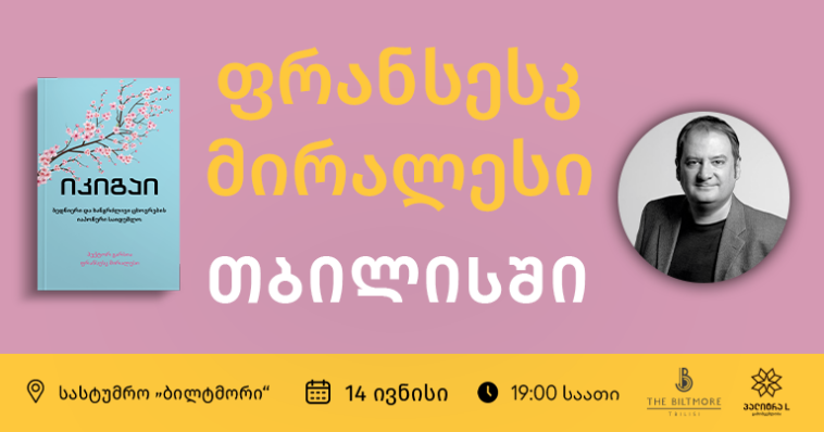 13 ივნისს საქართველოს მსოფლიოში ცნობილი ავტორი ფრანსესკ მირალესი ეწვევა, რომლის თანაავტორობით შექმნილი ბედნიერი და ხანგრძლივი ცხოვრების იაპონური საიდუმლო „იკიგაი“ ბესტსელერად იქცა. 14 ივნისს, 19:00 საათზე ავტორი თბილისში, სასტუმრო „ბილტმორში“ მკითხველთან შეხვედრას გამართავს.