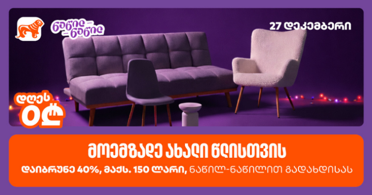 შეთავაზების ფარგლებში, 27 დეკემბერს, ის მომხმარებლები, რომლებიც საქართველოს ბანკის ნაწილ-ნაწილ გადახდით ისარგებლებენ, JYSK-ში შოპინგისას 40%-იან ქეშბექს მიიღებენ (მაქსიმუმ 150 ლარი).