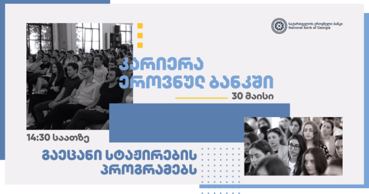 საქართველოს ეროვნული ბანკის სტაჟირების პროგრამა საუკეთესო შესაძლებლობაა სტუდენტებისთვის. თქვენ საშუალება გექნებათ, წვლილი შეიტანოთ ქვეყნის ეკონომიკურ წინსვლასა და მის ფინანსურ სტაბილურობაში. პროფესიონალ გუნდთან მუშაობა, საერთაშორისო ფინანსურ ინსტიტუტებთან და სხვა ქვეყნის ცენტრალურ ბანკებთან თანამშრომლობა მრავალმხრივი ინტერესების დაკმაყოფილების ასპარეზს გაძლევთ.