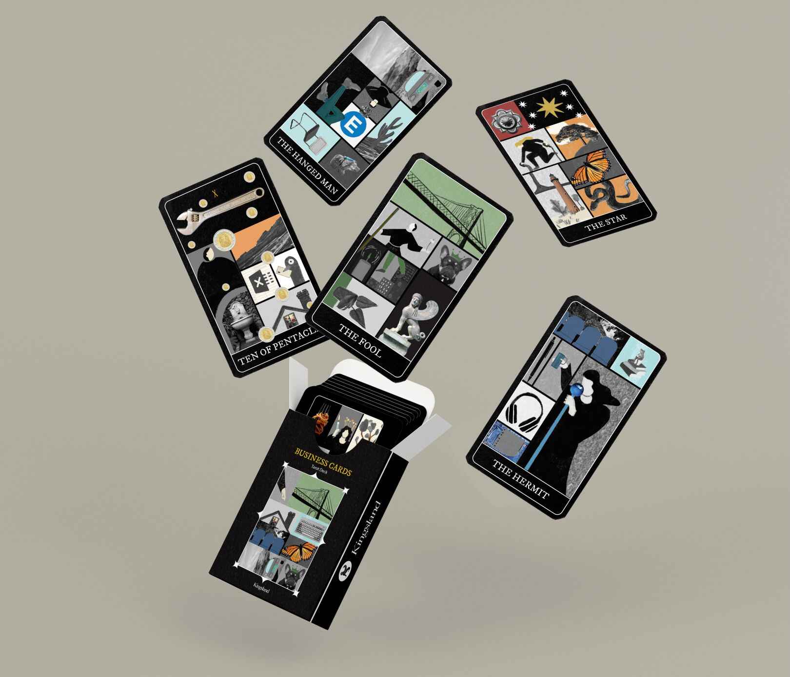 დუგლასის ესთეტიკური შეხედულებების ფონზე ტაროს კარტის ბიზნესში გამოყენება ლოგიკურ გადაწყვეტილებად გვეჩვენება. მართალია, დღევანდელ ციფრულ სამყაროში სავიზიტო ბარათები შედარებით ნაკლებ აქტუალურია, მაგრამ Kingsland-ს სხვა მოცემულობა ჰქონდა… კერძოდ, სააგენტომ პანდემიის დროს დაიწყო ზრდა, ფიზიკურ სივრცეში გადმონაცვლების შემდეგ კი კოლეგებს შორის მჭიდრო კომუნიკაცია აუცილებელი იყო — ამიტომაც აქციეს ტაროს კარტები სავიზიტო ბარათებად, რათა ერთმანეთზე მარტივად შეჰქმნოდათ გარკვეული შეხედულება. არქეტიპებსა და იდენტობაზე ხაზგასმა კი საუკეთესო საშუალებად მოეჩვენათ.