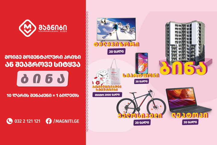 „მაგნიტის“ წამახალისებელი გათამაშების გამარჯვებულები ტელეკომპანია „იმედის“ პირდაპირ ეთერში დუტა სხირტლაძემ გამოავლინა.