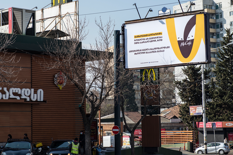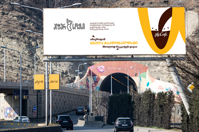 თუკი კარგ ამბებს რეკლამა არ სჭირდება, მაშინ სარეკლამო სივრცის სხვებისთვის დათმობაც შეიძლება. ცოტა ხნის წინ, მაკდონალდს საქართველოს ყველა რესტორანმა მხოლოდ McCafe-ს ყავის შეთავაზება დაიწყო. მშვენიერი ამბავია – სხვა დროს, ასეთ სიახლეს მასშტაბურ კამპანიას მიუძღვნიდნენ, თუმცა, ამ ამბავს რეკლამა არ სჭირდება. ჰოდა, რაკი ასეა, მაკდონალდს საქართველომ გადაწყვიტა საკუთარი ბილბორდის სარეკლამო სივრცე სხვა კომპანიებისთვის დაეთმო. ამის შესახებ განცხადებაც გამოაკრა: „გათხოვებთ ბილბორდს, რომელიც არ გვჭირდება იმის სარეკლამოდ, რომ ამიერიდან, ყველა მაკდონალდსში მხოლოდ მაკკაფეს ყავაა!“. განცხადებას უკვე მოყვა გამოხმაურება და მაკდონალდსის ბილბორდზე სარეკლამო სივრცე „ალტერსოქსმა“, „ბრედფილდმა“ და „ჩართემ“ დაიკავეს. შედეგად, აი, ასეთი გარე რეკლამა გამოვიდა. ნახეთ და შეაფასეთ.