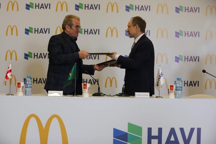„მაკდონალდს საქართველო“ მსოფლიოში აღიარებულ საერთაშორისო კომპანია „HAVI ლოგისტიკთან“ გრძელვადიან თანამშრომლობას იწყებს. კომპანია HAVI უზრუნველყოფს „მაკდონალდსის“ რესტორნების ქსელის მომარაგების მართვას. ამასთან დაკავშირებით კომპანიებს შორის პარტნიორული ურთიერთობების შესახებ ხელშეკრულება 12 თებერვალს გაფორმდა.
