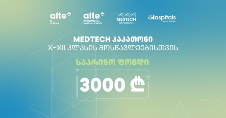 ალტე უნივერსიტეტის მედიცინის საერთაშორისო სკოლისა და საინფორმაციო ტექნოლოგიების სკოლის ორგანიზებით, 6–7 ნოემბერს გაიმართება ორდღიანი MedTech Hackathon, თემაზე – “AI for Care”, რომლის საპრიზო ფონდი 3000 ლარია.