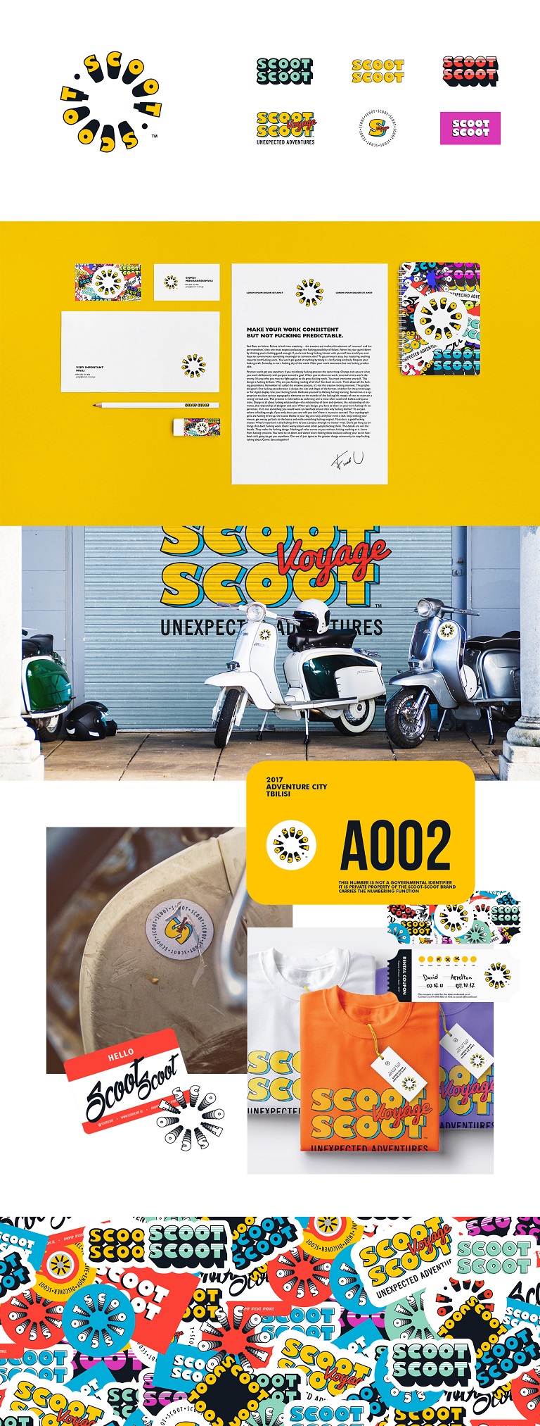 საცობი – თავის ტკივილი და სტრესი მათთვის, ვინც საჭესთან ზის. თავისუფლება და თავგადასავალი, სიმარტივე, სილაღე და მობილობა – ეს ის მთავარი ასპექტებია, რასაც გამოხატავს სკუტ-სკუტი. სწორედ ამ ღირებულების შესაბამისი უნდა ყოფილიყო ბრენდის ვიზუალური ენაც. ამიტომაც, შემუშავდა ცოცხალი და მრავალფეროვანი ვიზუალური სისტემა, რომელიც ბრენდის დაპირებას გადმოსცემს თავისი მოქნილობით, ახალგაზრდა და თანამედროვე სულით, ფერთა პალიტრითა და სხვა ვიზუალური აქტივებით.