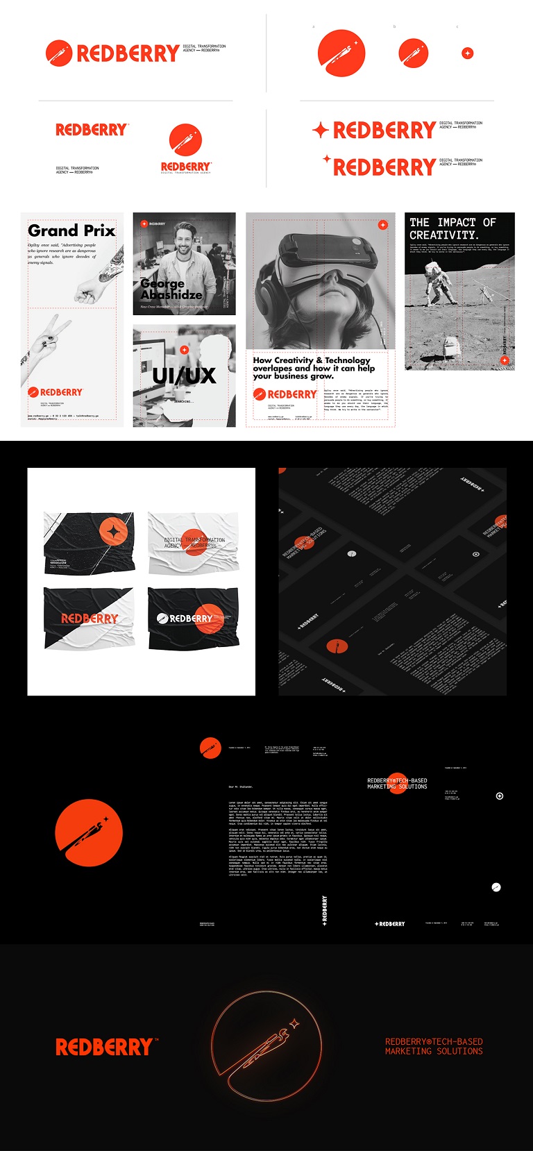 ქართული სარეკლამო ინდუსტრიის ასტრონავტები, უცნობი სივრცეების პიონერები, შეუჩერებელი კოსმიური რაინდები – სააგენტო Redberry-ის ლოგოტიპიც ზუსტად ამას ასახავს. თანამშრომლობის შედეგად, ბევრი საინტერესო კონცეფცია შემუშავდა, თუმცა არსებულ ლოგოტიპთან აზრობრივი და ემოციური ბმა მეტად ძლიერი აღმოჩნდა. ამან დიზაინერებს კონცეფციის შენარჩუნებისკენ უბიძგა. ლოგო დაიხვეწა ტექნიკურად და სტილისტიკურად. განვითარდა ვიზუალური ენა და შედეგად, მოქნილი და თანამედროვე სტანდარტების შესაბამისი გახდა.