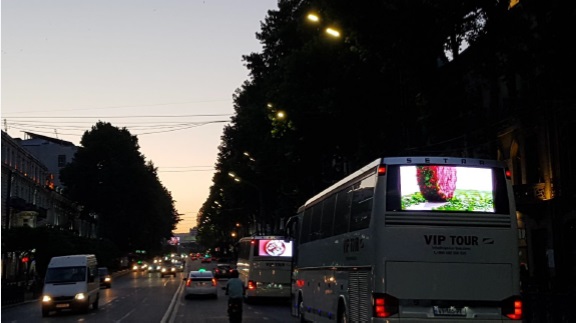 Moving Ad ჰოლდინგ VIP TOUR-ში შემავალი კომპანიაა, რომელიც, მომხმარებელს, მათსავე სატრანსპორტო საშუალებებზე სარეკლამო ვიდეორგოლის განთავსებას სთავაზობს. დამკვეთი ირჩევს ავტობუსის მოძრაობის მარშრუტსა და პაკეტს – ეკრანზე განსათავსებელი რგოლის ხანგრძლივობას, ასევე – ჩვენებების რაოდენობას.