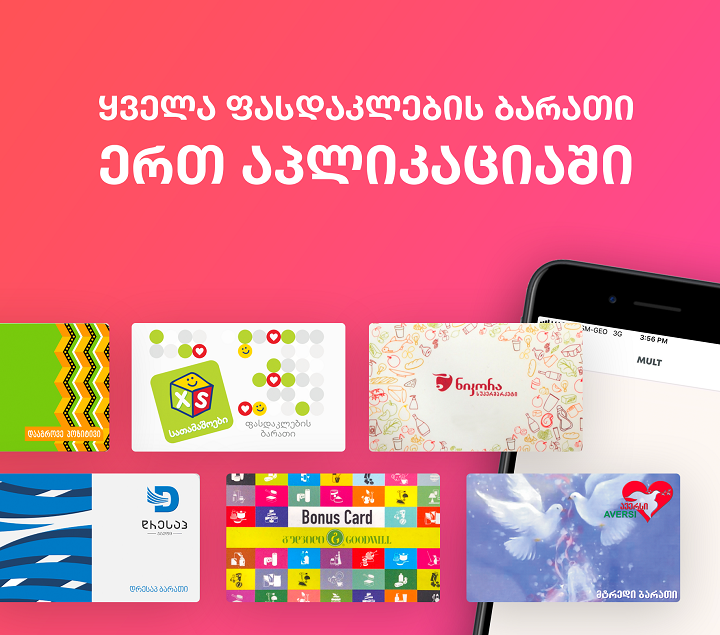 Mult-ის მეშვეობით მომხმარებლებს საშუალება აქვთ, განათავსონ დაგროვებითი/ფასდაკლების ბარათები ერთ სივრცეში და შეამსუბუქონ საფულე“.