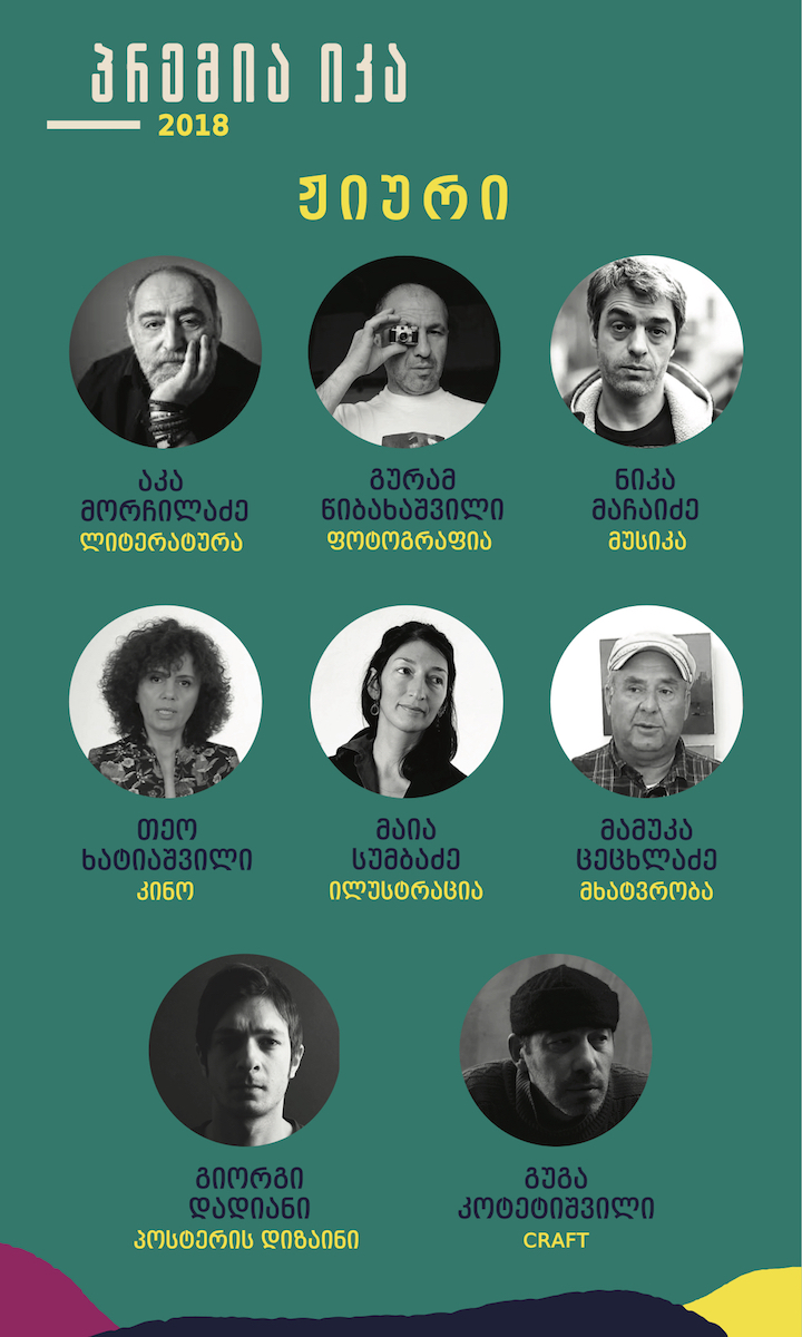 ლიტერატურა: აკა მორჩილაძე, ფოტოგრაფია: გურამ წიბახაშვილი, მუსიკა: ნიკა მაჩაიძე, კინო: თეო ხატიაშვილი, ილუსტრაცია: მაია სუმბაძე, მხატვრობა: მამუკა ცეცხლაძე, პოსტერის დიზაინი: გიორგი დადიანი, CRAFT – გუგა კოტეტიშვილი.