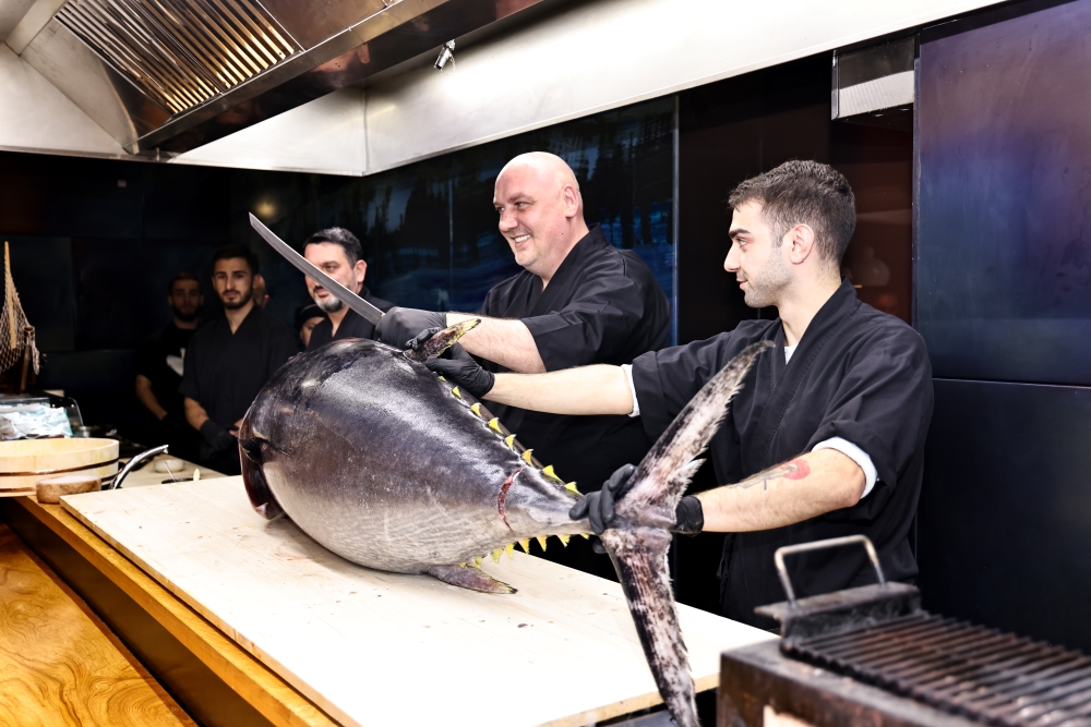 სპეციალურად ესპანეთიდან ჩამოიტანა სილქ როუდ ჯგუფის მიერ დაარსებულმა სადისტრიბუციო კომპანია „Unicorn Solutions”-მა 87 კგ-იანი ბლუ ფინის თინუსი. ექსკლუზიური ტექნიკით მომზადებული ხმელთაშუა ზღვის თინუსის თეფში დააგემოვნეს სტუმრებმა, სადაც შედიოდა ნიგირი, საშიმი, სტეიკი და თინუსის მუცელი (ტორო).