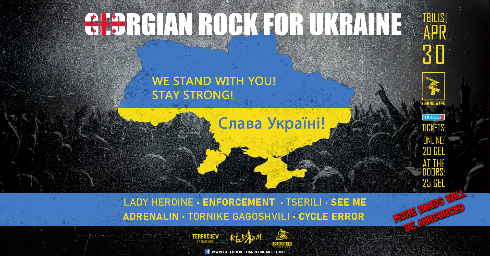 ქართველი მუსიკოსები აგრძელებენ უკრაინის მხარდამჭერ ღონისძიებებს და ამ შაბათს გვთავაზობენ როკ კონცერტს, რომლითაც კიდევ ერთხელ გამოხატავენ თავის პოზიციას, დაუპირისპირდებიან ომს, აგრესიას და თანადგომას გამოუცხადებენ უკრაინელ ხალხს.