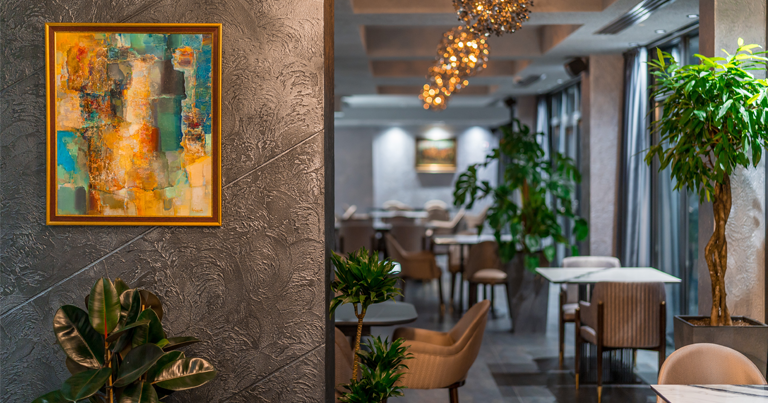 რესტორანში ღია სამზარეულო ფუნქციონირებს, სადაც შეგიძლიათ თვალი ადევნოთ, თუ როგორ ფუსფუსებენ მზარეულები კულისებს მიღმა.