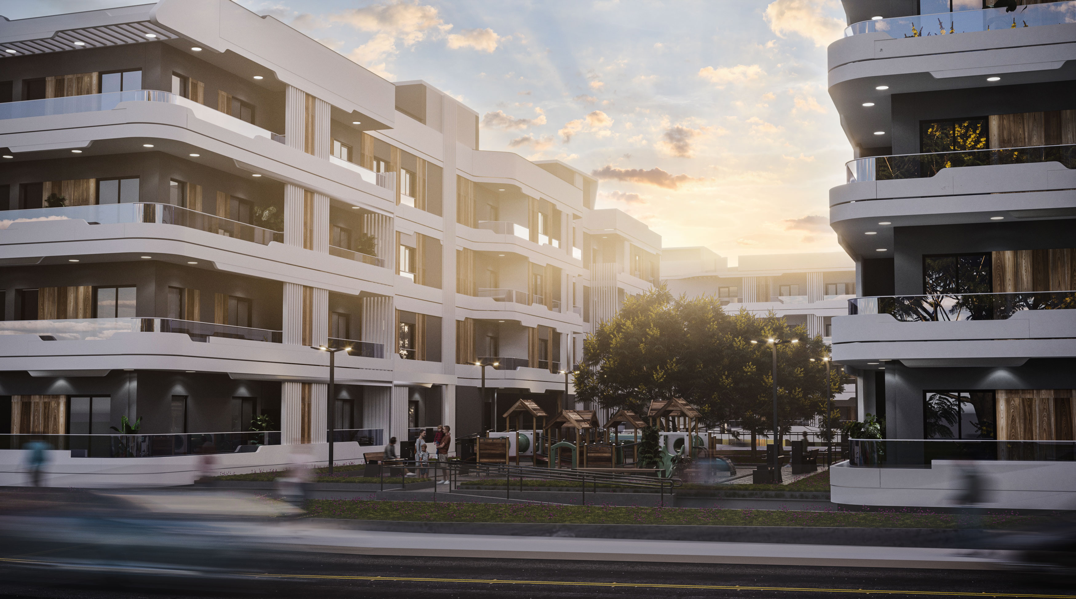 კომპლექსის ტერიტორიაზე მოეწყობა მრავალფეროვანი ინფრასტრუქტურა: გამოიყოფა საპარკინგე ადგილები, გაკეთდება სპორტული და რეკრეაციული ზონები, ასევე მოსასვენებელი და გასართობი სივრცეები ბავშვებისთვის.