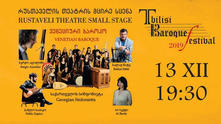 13 დეკემბერს რუსთაველის თეატრის მცირე სცენაზე გაიმართება ვენეციური ბაროკო. მონაწილეობენ: თბილისის სახელმწიფო კამერული ორკესტრი – საქართველოს სინფონიეტა, სერჯო აცოლინი – ფაგოტი │იტალია, აი იკედა – ფაგოტი │იაპონია
