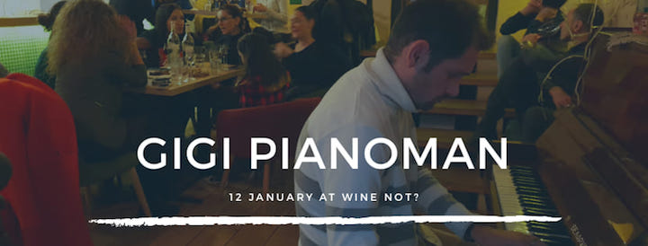 12 იანვარს ბარში “Wine Not?” გიგი პიანომენი თქვენთვის საყვარელ მუსიკებს დაუკრავს. საღამო 21:00 სთ-ზე დაიწყება. სხვა დამატებითი ინფორმაციისთვის ეწვიეთ ბმულს.