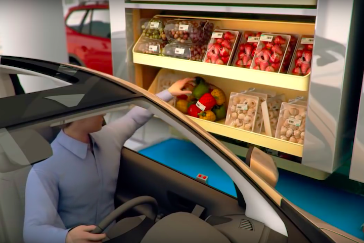 დაჰირ ინსაატმა სუპერმარკეტის კონცეპტი მოიფიქრა, სადაც მყიდველებს საშუალება აქვთ, პროდუქტები მანქანიდან გადმოუსვლელად შეიძინონ. მისი სავაჭრო ჰოლი დაყოფილია სხვადასხვა განყოფილებად და თითოეული მათგანი მხოლოდ ერთ მანქანას ემსახურება. მომხმარებელი თავისუფალ ადგილას აჩერებს, სადაც სხვადასხვა პროდუქტის მოძრავი თაროები ხვდება. ამ შემთხვევაში, მარკეტინგულ ხრიკებს აზრი ეკარგება, რადგან ყველა პროდუქტი თანაბარ მდგომარეობაშია და შესაბამისად, მომხმარებელი ყოველგვარი ზეგავლენისგან დაცულია. შერჩეული პროდუქტები მოლარეს ეგზავნება და კალკულაციისა და ფულის გადახდის შემდეგ, შეფუთულ ნავაჭრს ფანჯრიდან იღებს მყიდველი.
