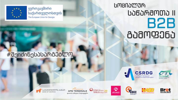 15 ნოემბერს „სოციალური საწარმოების მე-2 B2B გამოფენა” გაიმართება. ღონისძიება საქართველოს სტრატეგიული კვლევებისა და განვითარების ცენტრის (CSRDG) ინიციატივით ტარდება. გამოფენა King David-ში, 12:00 საათზე დაიწყება და 20:00 საათამდე გასტანს. ორმოცამდე სოციალური საწარმო თავიანთ პროდუქციასა და მომსახურებას ერთ სივრცეში წარმოადგენს:უსაფრთხო სათამაშოებს, ტრადიციულ ხელნაკეთ დეკორატიულ და გამოყენებით ნივთებს, მისალოც ბარათებს, საბავშვო ავეჯს, სათამაშო მოედნებს, ხელით დაწნულ კალათებს, ტრადიციულ სუნელებს ისტორიული რეცეფტებით, თაფლს, ნატურალურ წვენებს, ღვინოს და ა.შ. იქნებიან ისეთი სოციალური საწარმოებიც რომლებიც მომხმარებლებს სთავაზობენ 24 საათიანი ზრუნვის მომსახურებას, კაფეს სერვისებს, მაკულატურის შეგროვებისა და გადამუშავების მომსახურებას, მუსიკალური თერაპიისა და გაფორმების სერვისებს.