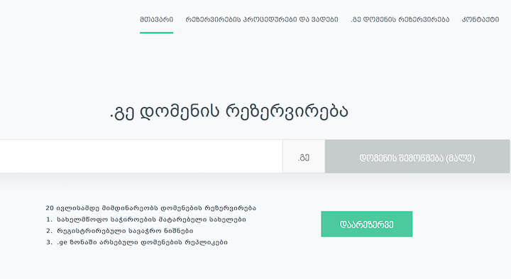 .გე ზონის დომენის სარეზერვო ბაზის შესაქმნელად წინასწარ რეზერვაცია დაიწყო