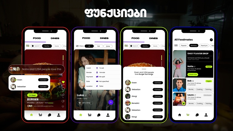 მთავარი ისაა, რომ ამ აპლიკაციაში ინფლუენსერი არის თავად საჭმელი. თანამოაზრეების პოვნა იმის მიხედვით ხდება, ვის აქვს მოწონებული იგივე კერძი, რაც შენ, დაათვალიერებ მის პროფილს და თუ მოგეწონება, დააჭერ ღილაკს „გაიცანი”.