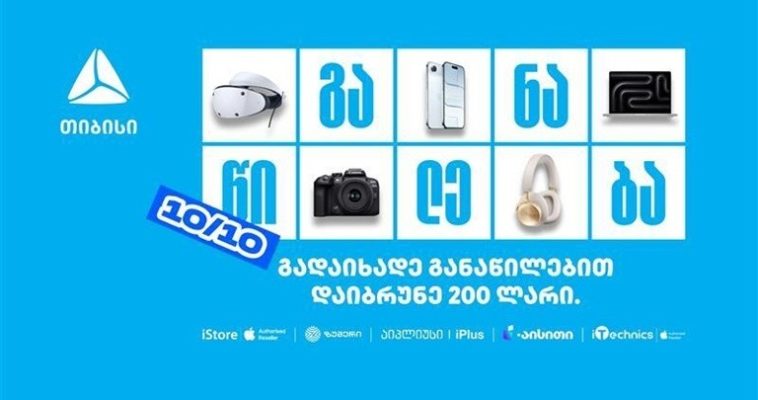 10/10-ში თიბისი განაწილებით შერჩეულ ტექნიკის მაღაზიებში შოპინგისას, მომხმარებლებს 17 ოქტომბრამდე, ერთგული ლარების ანგარიშზე 200 ლარი დაუბრუნდებათ: