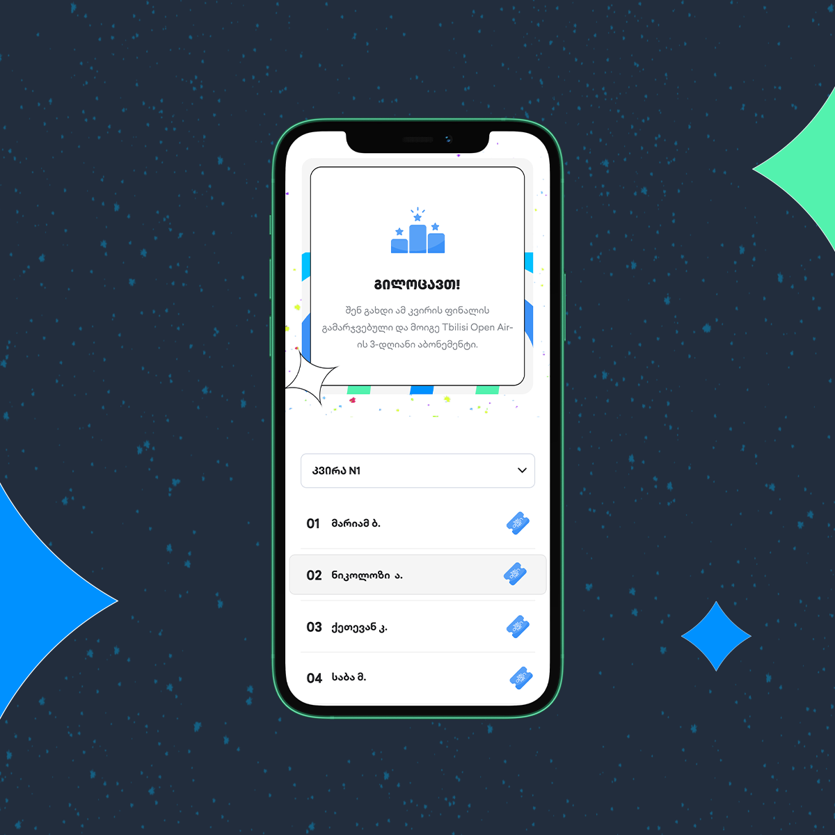 აბონემენტის მოსაგებად, მონაწილეობა უნდა მიიღო ყოველკვირეულ თამაშში. ყოველი ორშაბათიდან შაბათის ჩათვლით, უნდა შეასრულო ციფრული ბანკის ყოველდღიური მისიები. თუ ექვსივე დღის მისიას წარმატებით შეასრულებ, ბოლო, კვირა დღეს, შეძლებ მონაწილეობა მიიღო კვირის ფინალურ მარათონში, სადაც გამარჯვებული 125 მონაწილე საჩუქრად მიიღებს ფესტივალის სამდღიან აბონემენტს.