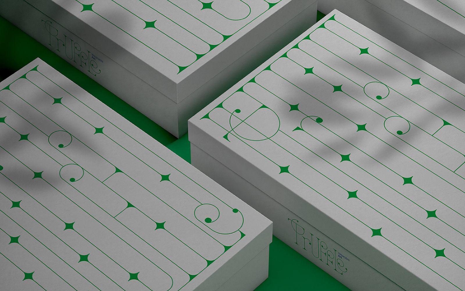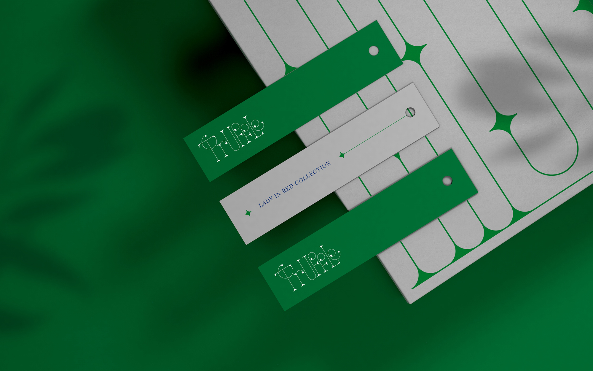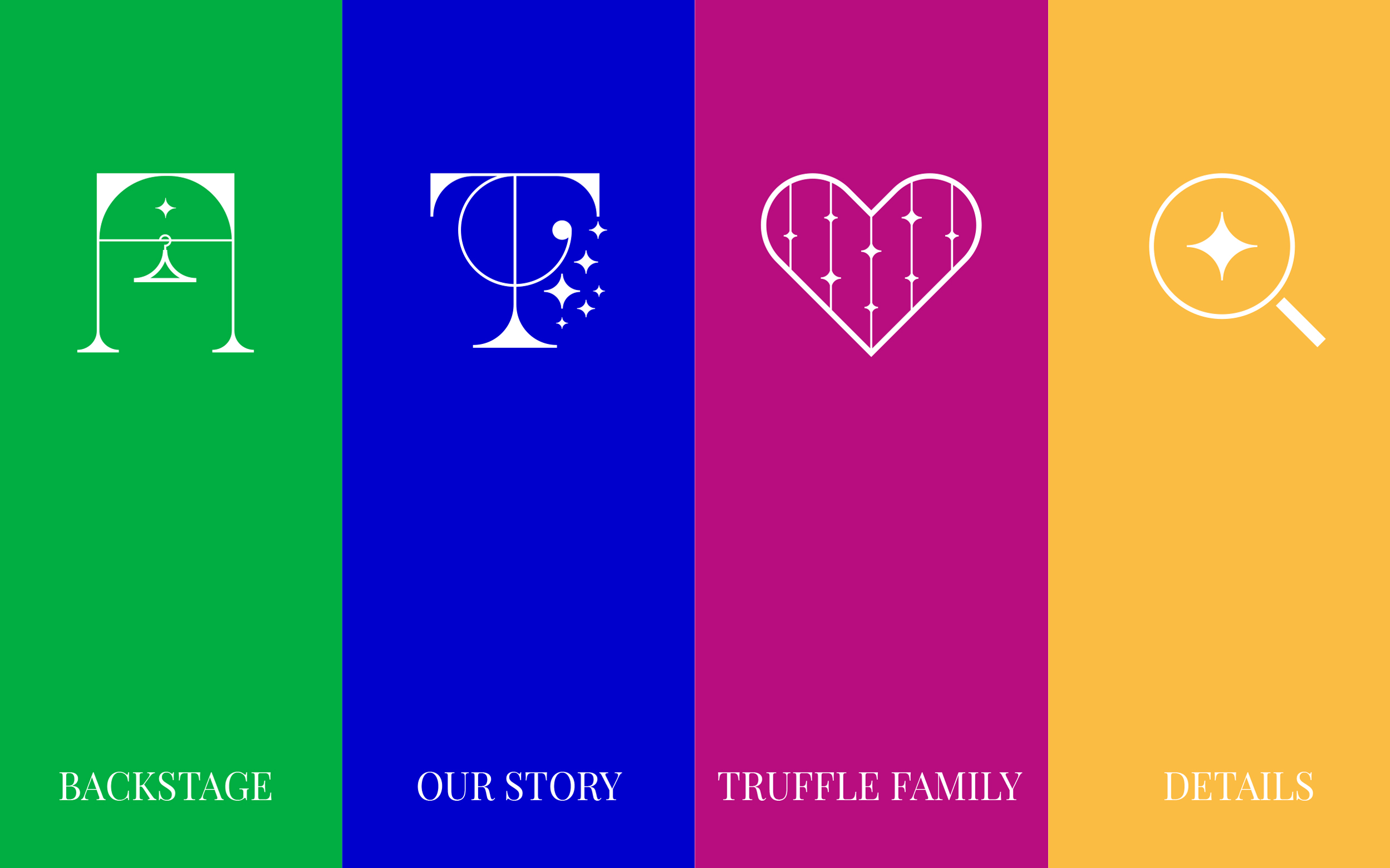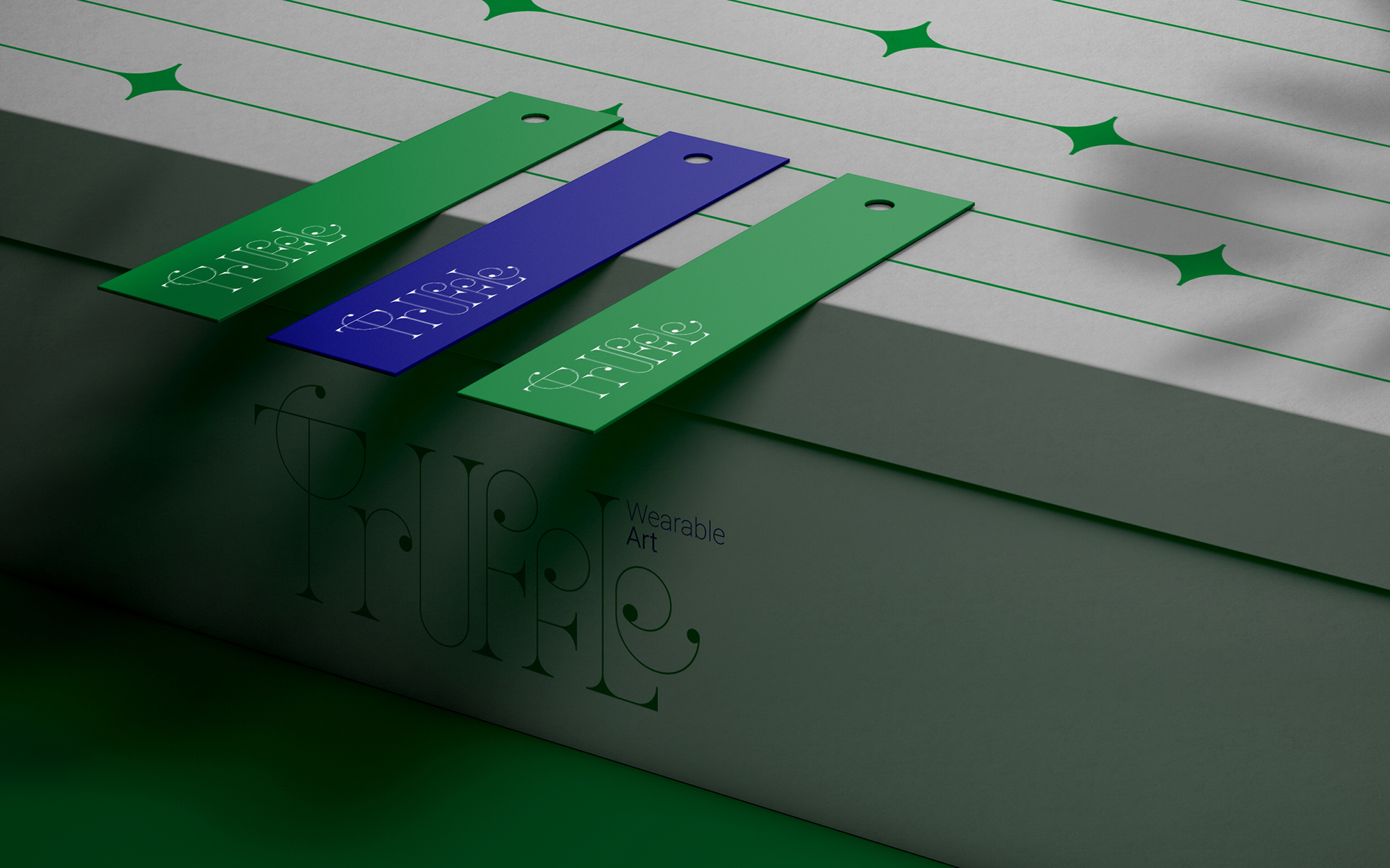 ბრენდის მარადიული და ნარატიული სულისკვეთების შესატყვისად, „ტრიუფელის“ ვიზუალური იდენტობა ელეგანტურ, დინამიკურ ტიპოგრაფიულ სისტემას ეყრდნობა. ამ თანამედროვე და დეკორატიულ ტიპოგრაფიულ ვიზუალურ იდენტობაში გამოყენებული დეტალები არ-ნუვოს მოგაგონებთ — ვარსკვლავის ფორმის ელემენტები ფარავს შეხების სხვადასხვა წერტილს.