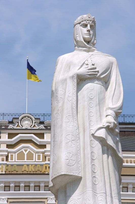 როგორც კიევის რუსეთის პირველი პრინცესა (945-460), ოლგა კიეველი ასევე გახდა პირველი შთამაგონებელი ქალი უკრაინის ისტორიაში. იგი იყო პიონერი ბიზანტიის იმპერიაში მშვიდობიანი ვიზიტისას, რითაც დაამყარა კავშირი ამ ძლიერ სახელმწიფოსთან. ამასთან, ოლგამ მიიღო ქრისტიანობა მაშინ, როცა მისი ქმარი და შვილი წარმართებად დარჩნენ.