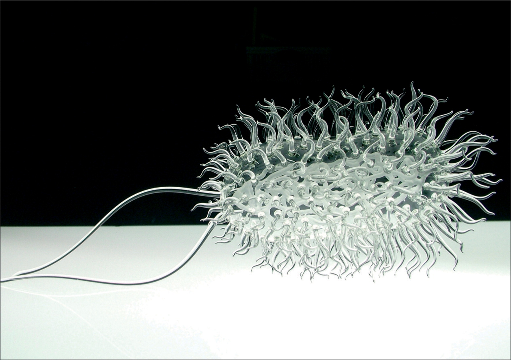 „მინის მიკრობიოლოგია” – ეს არტისტ ლუკ ჯერამის შემუშავებული ნაკეთობების სერიაა, რომლებიც ისტორიაში გავრცელებული ვირუსების მოტივებზეა შექმნილი. სკულპტურები ზუსტად ასახავს ვირუსების რთულ ფორმას, თითქოს მათ მიკროსკოპით აკვირდებიან. ამ გამჭვირვალე გამოსახულებებით ის ცდილობს, შექმნას მედიაში გავრცელებული სურათების ალტერნატიული ვარიაციები.