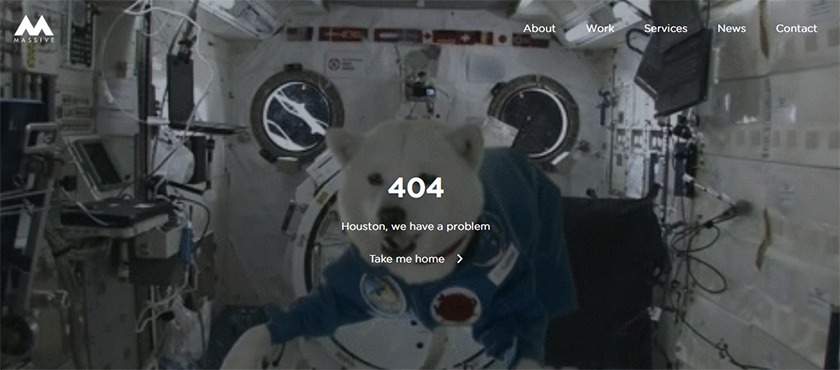 ამ ვებგვერდს აშკარად დაჰკრავს Space Oddity-ს განწყობა! ერთ-ერთი ყველაზე საყვარელი ფრაზა „Houston, we have a problem“ კარგად წარმოაჩენს Massive Media-ს იუმორის გრძნობას. ჰაერში მოცურავე ძაღლი კი მომხმარებლებს აუცილებლად გააცინებს და შესაძლოა, გვერდის განახლებაც კი აღარ მოუნდეთ.